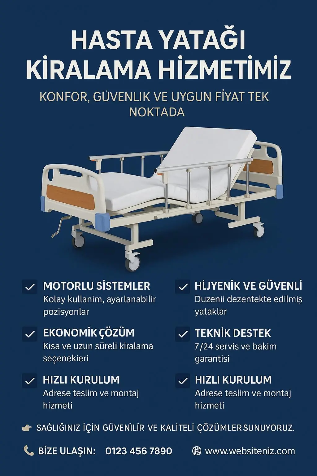 3 Motorlu Hasta Karyolası Kiralık